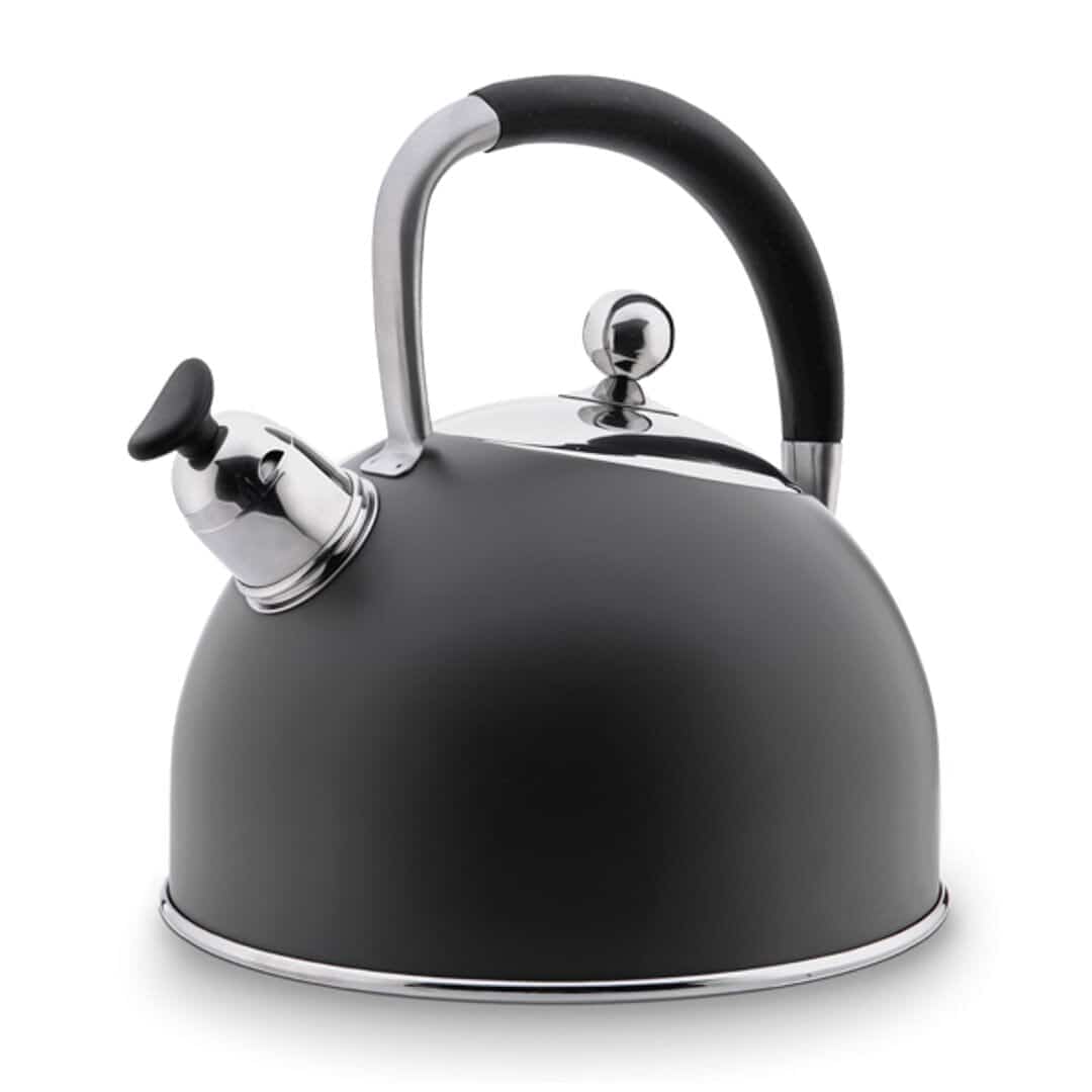 Roestvrijstalen fluitketel in modern zwarte uitvoering