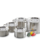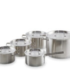bestaande uit steelpan 16, kookpan 16,18,20 en soeppan 24 cm met deksel
